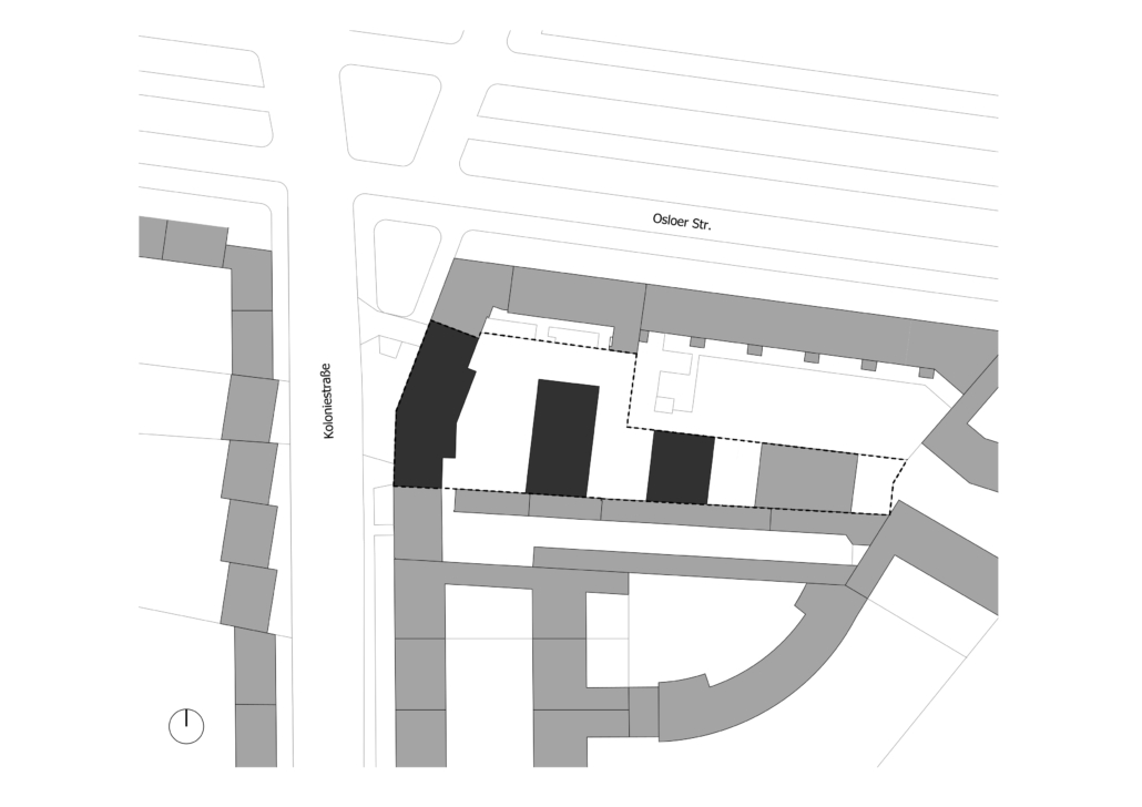 Das Studentenwohnheim in der Koloniestraße 11-12 in Berlin-Wedding besteht aus drei 6-geschossigen Neubauten mit Staffelgeschossen. Bauteil 01 schließt die Lücke zwischen den Bestandsgebäuden entlang der Koloniestraße. Bauteil 02 und 03 liegen im mittleren Teil des Grundstücks. Über Durchfahrten in allen Bauteilen wird auch die rückwärtige Bestandshalle als 4. Bauteil erschlossen.